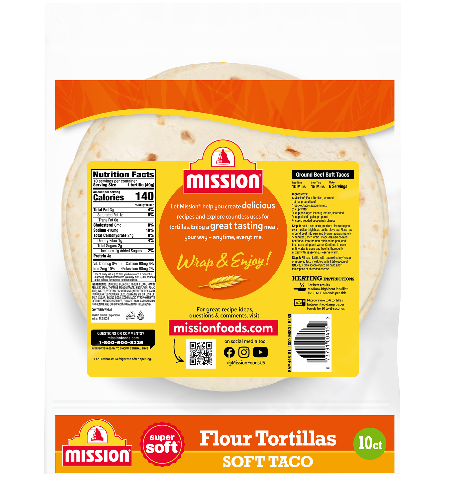 We don’t just settle for soft – we do super soft. Why? Because there is no better addition to your favorite recipes than Super Soft 8” tortillas. Heat them up over medium-high heat on an ungreased skillet for 10–15 seconds per side for maximum deliciousness.